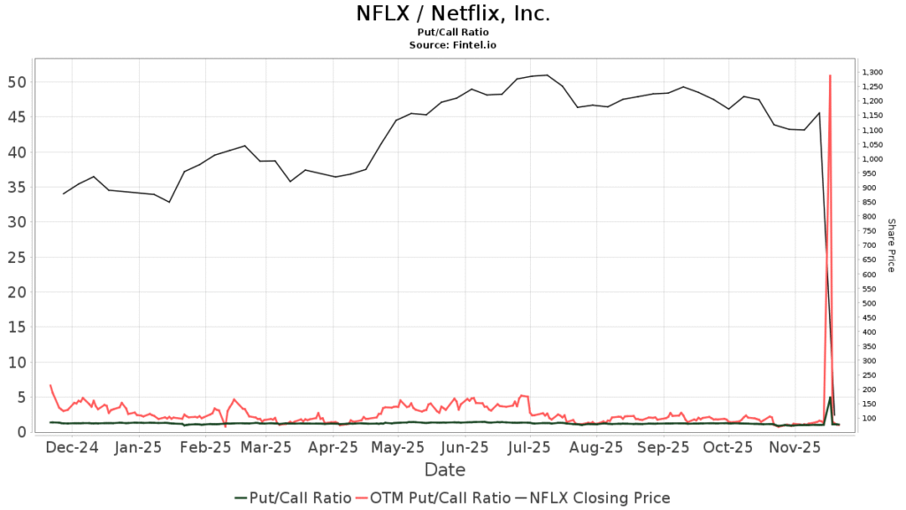 The put/call ratio of NFLX is 1.18, indicating a bearish outlook.