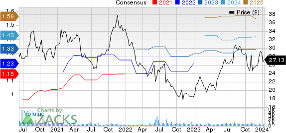 The Zacks Consensus Estimate for 2023 and 2024 revenues stands at $514.43 million and $549.19 million, signaling year-over-year growth of 8.36% and 6.76%, respectively. The consensus estimate for 2023 earnings is projected at $1.33 per share, indicating a 9.92% increase year over year.