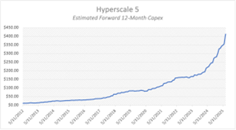 Put it together, and the “Hyperscale 5” — the five largest U.S. hyperscale cloud operators who own the lion’s share of AI compute capacity — are expected to spend over $400 billion on capital expenditures in the next year alone.