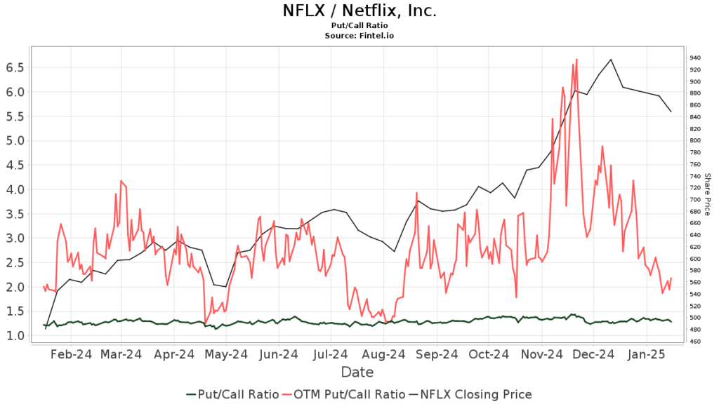 The put/call ratio of NFLX is 1.29, indicating a bearish outlook.