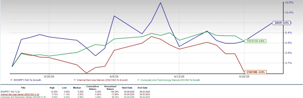 Shopify SHOP shares have gained 8.4% over the past month compared with the broader Zacks Computer & Technology sector’s increase of 4.8%. The Zacks Internet – Services industry has declined 0.9% in the same time frame.