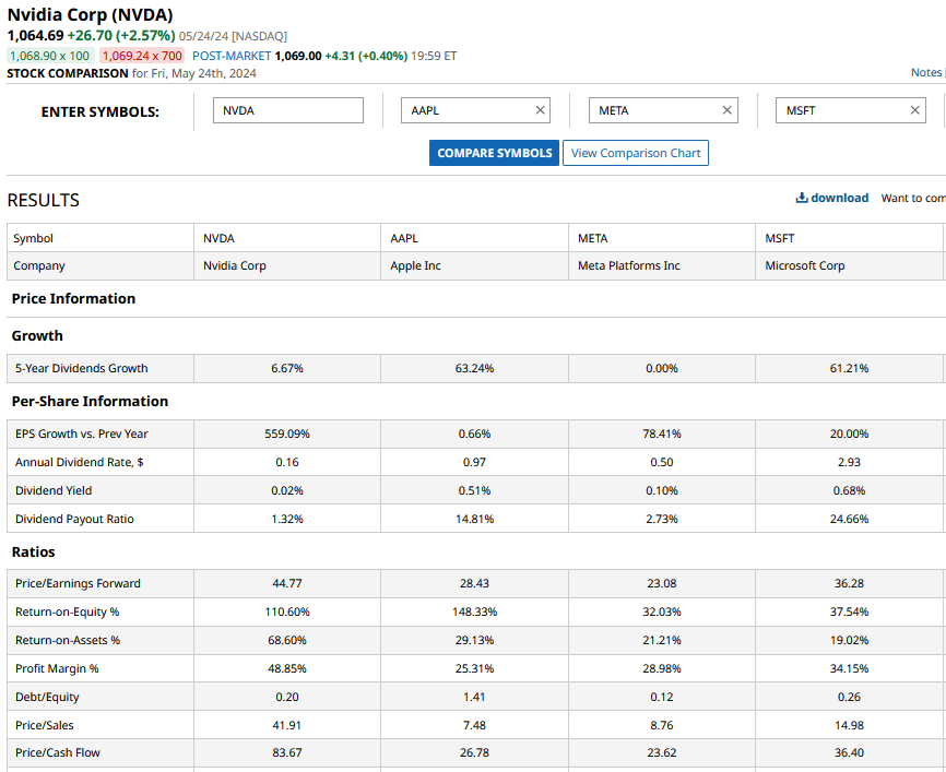 Compared to tech counterparts, Nvidia’s dividend yield lags significantly, making it a standout anomaly within the tech realm. Meta Platforms and Alphabet, fellow Magnificent 7 stocks, offer dividend yields exceeding 0.40%, a stark contrast to Nvidia’s meager 0.038%.