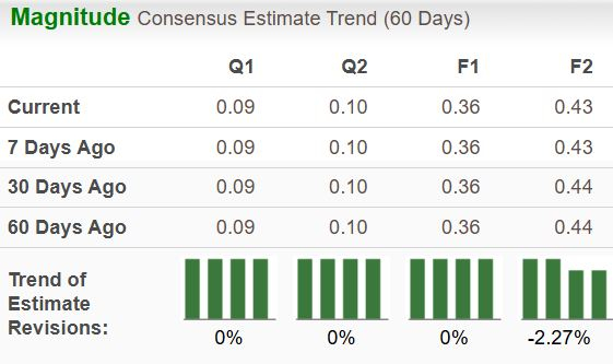 The Zacks Consensus Estimate for earnings in the to-be-reported stands at 9 cents, indicating 28.6% growth from the year-ago reported quarter. The consensus estimate for total revenues stands at $705.1 million, indicating 26.3% year-over-year growth. There has been no change in analyst estimates or revisions lately.