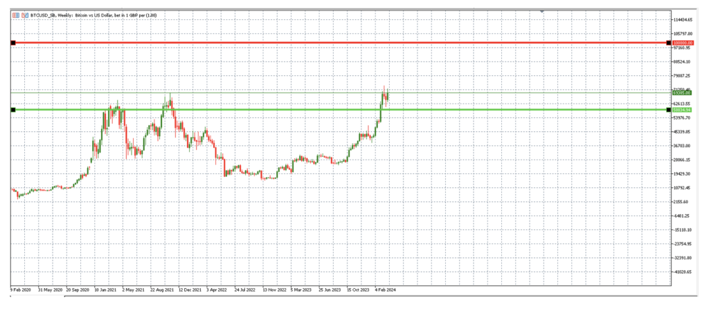 The ebb and flow of investor sentiment suggest a potential upward trajectory for Bitcoin, with projections pointing towards the coveted $100K price milestone. While the immediate support level rests at around $58K, as evidenced by the chart below, the bulls appear poised to propel Bitcoin to new heights once again.
