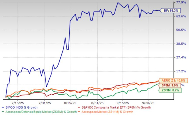 SIFCO Industries, Inc.’s SIF investors have been experiencing some short-term gains from the stock of late. Shares of the Cleveland, OH-based manufacturer of forgings, sub-assemblies and machined components (primarily serving the aerospace and energy or A&E markets) have gained 69.3% in the past three months compared with the industry’s 8.7% rise. The stock also outperformed the sector and the S&P 500’s 10.8% and 9.9% gains, respectively, in the same time frame.