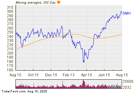 Looking at the chart above, SMH’s low point in its 52 week range is $170.11 per share, with $302.98 as the 52 week high point — that compares with a last trade of $296.55. Comparing the most recent share price to the 200 day moving average can also be a useful technical analysis technique — learn more about the 200 day moving average ».