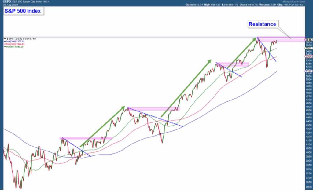 The stock market’s upward trajectory since early 2023 remains resilient despite facing minor setbacks as we step into September. The recent correction, highlighted in the preceding month’s commentary, appears to have stabilized, with the S&P 500 showing a robust rebound.