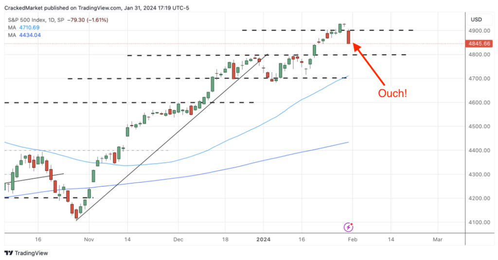 The S&P 500 corrected 1.6% on Wednesday, marking a tumultuous period for investors. This correction followed a significant rally on Monday which prompted a wave of selling later in the week. The market was rattled by a combination of “disappointing” earnings from big tech companies and Fed Chair Jerome Powell’s indication that the Fed does not intend to cut rates in March.