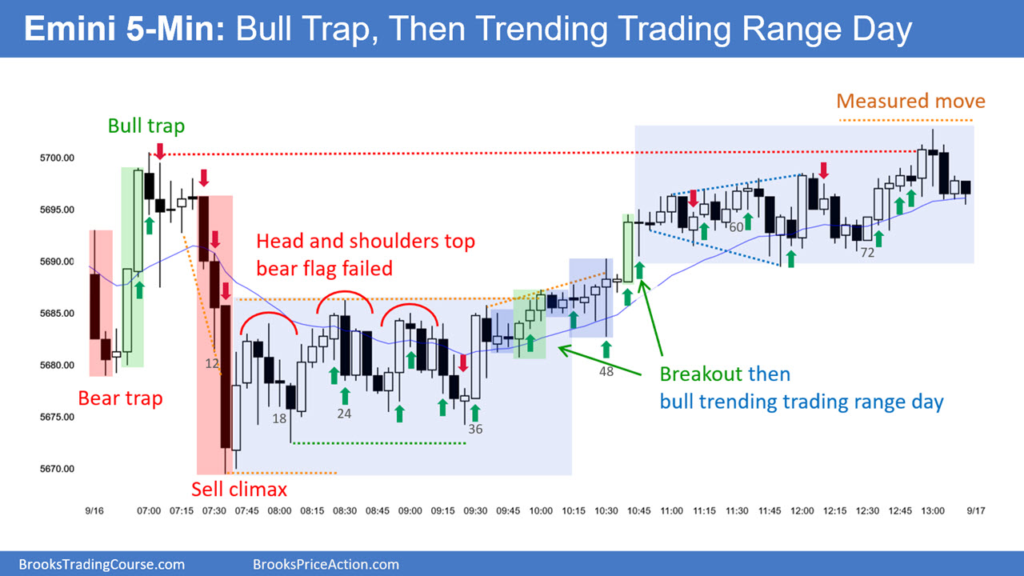 - Approaching the August high, the E-mini market reflects a strong rally that favors a potential second leg up.