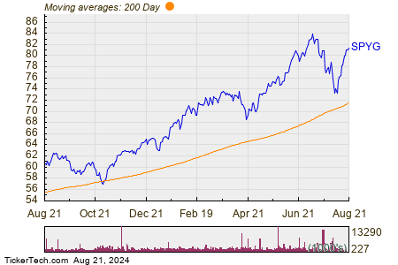 Observing the one-year price performance of SPYG juxtaposed with its 200-day moving average reveals a volatile journey for the ETF. With a 52-week low of $56.78 and a high of $84.158, the current trading value stands at $81.46. Such comparisons against the moving average provide investors with valuable insights into potential market trends.