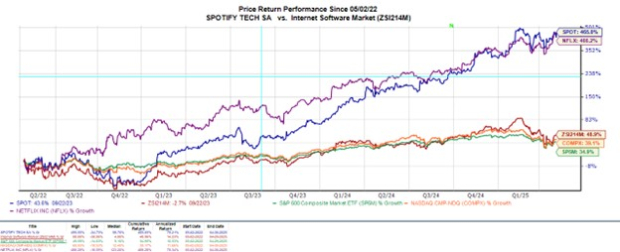 Providing guidance for the second quarter, Spotify expects to add 11 million MAU and 5 million subscribers. Furthermore, Spotify forecasts Q2 revenue at $4.52 billion or 10% growth, which fell in line with Zacks estimates (Current Qtr Below). Based on Zacks projections, Spotify’s total sales are expected to increase 16% in fiscal 2025 and are projected to spike another 15% in FY26 to $22.55 billion. Notably, the Sweden-based technology firm expects Q2 operating income at 539 million euros and forecasts a 31.5% gross margin.