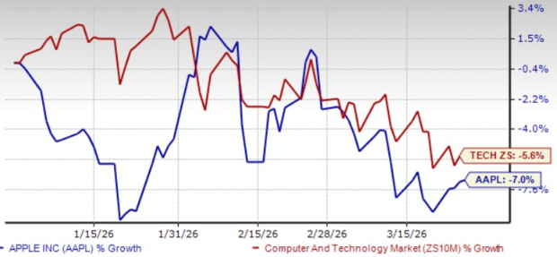 Apple shares have dropped 7% year to date, underperforming the broader Zacks Computer and Technology sector’s drop of 5.6%.