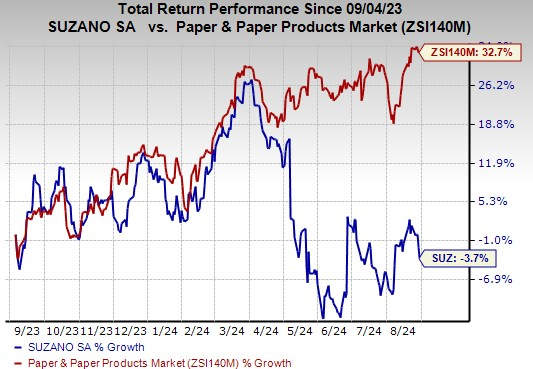Over the past year, Suzano’s shares have dipped by 3.7%, a trend misaligned with the broader industry’s growth of 32.7%.
