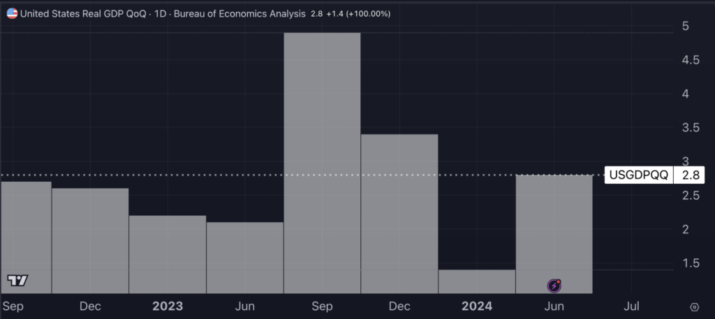 On the macroeconomic front, the U.S. economy showcased its strength, expanding at an annualized rate of 2.8% in the second quarter, a robust acceleration from the preceding quarter and surpassing growth forecasts of 2%.