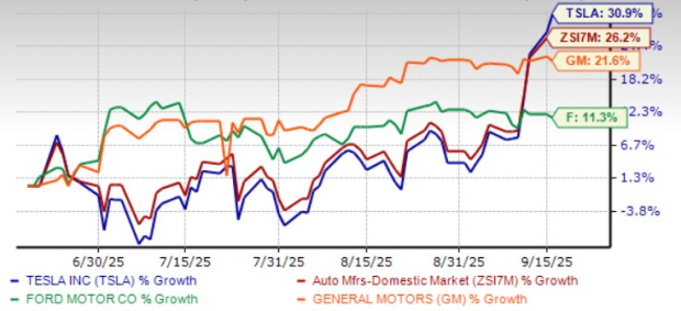 Shares of Tesla have rallied more than 30% over the past three months, outperforming the industry as well as legacy auto giants like Ford F and General Motors GM. Ford and General Motors shares rose over 11% and 21%, respectively, over the same timeframe.