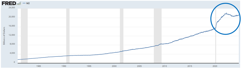 Chart showing the M2 money stock soaring after government pandemic stimulus