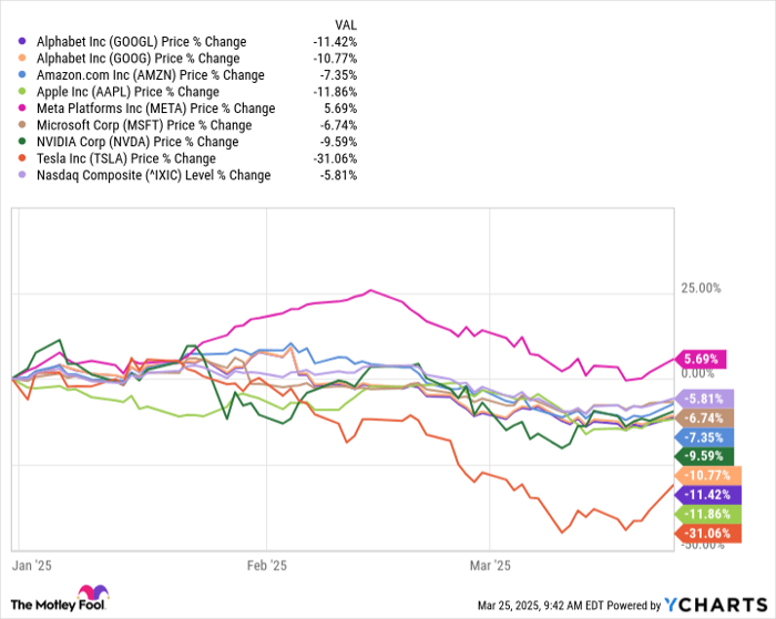 The “Magnificent Seven” stocks have been incredibly successful stock picks, but most have sold off so far in 2025, some heavily. Their lower prices are intriguing, but I don’t think all of them make great buys right now. While five look great, I’m avoiding two.