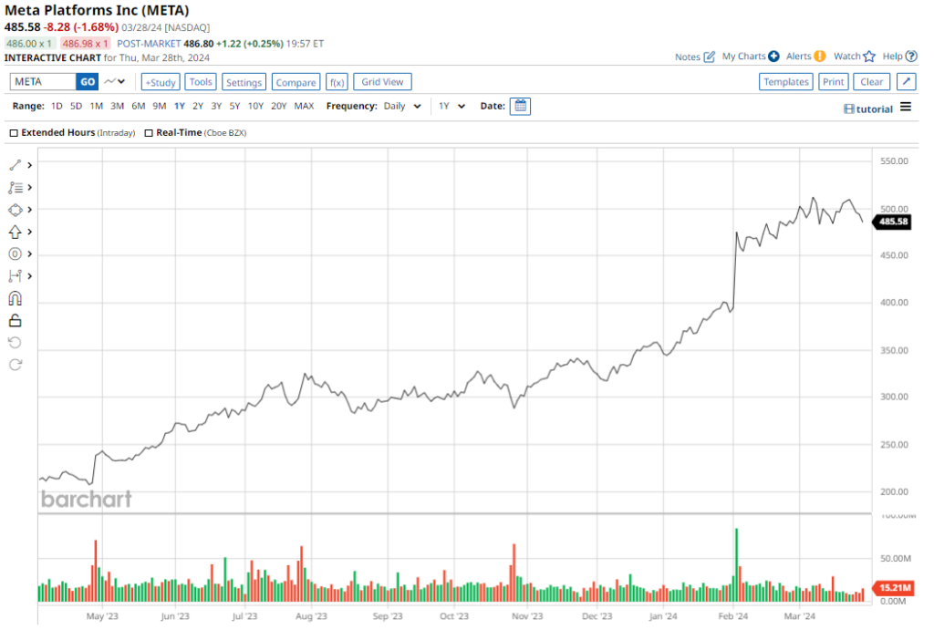 In fact, the Roundhill Magnificent Seven ETF (MAGS) – an exchange-traded fund (ETF) designed to track the performance of these seven companies – is up nearly 58% since last April, crushing the returns of the broader equities market. However, as the performance of this group starts to diverge in 2024 – with names like Apple and Tesla both in the red – it’s worth noting that one Mag 7 member just scored a bullish note from Wells Fargo. Here’s a closer look at the brokerage firm’s upbeat forecast for Meta.