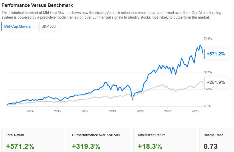 One strategy stands out amidst the turbulent seas – “Mid-Cap Movers.” Like a skilled surfer catching the perfect wave, this strategy identifies the top 20 performers each month, with precision.