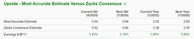According to Zacks assessments, Walmart’s Q1 earnings are forecasted to climb by 6% to $0.52 per share, paired with predictions of a 4% surge in quarterly sales to $159.33 billion. Even more alluring is Zacks ESP, hinting at Walmart potentially outshining earnings expectations with Q1 EPS estimated at $0.54 – a 2% upsurge compared to Zacks Consensus.