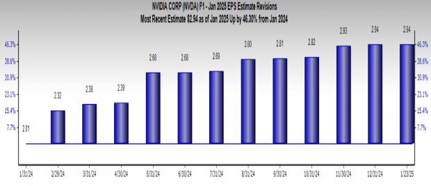 With NVIDIA’s shares poised to climb, it’s smart to consider buying the NVDA stock now. NVIDIA currently has a Zacks Rank #2 (Buy) and the $2.94 Zacks Consensus Estimate for NVDA’s earnings per share (EPS) is up 46.3% from a year ago (read more: 2 AI Stocks to Buy for Potential 2025 Gains: NVIDIA & Palantir).