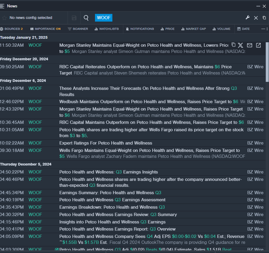 - WOOF Price Action: Shares of Petco Health fell 3.9% to close at $2.94 on Thursday.
