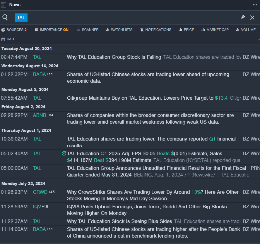 • TAL Price Action: The stock edged down slightly to $7.42 on Monday, a mere ripple in the grand scheme of TAL’s voyage.
