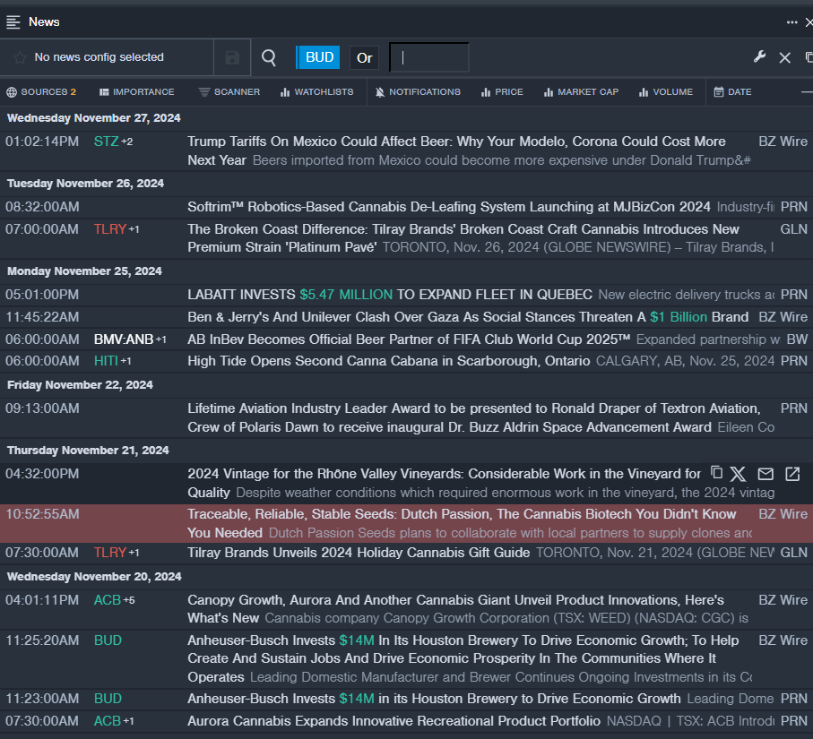 - Benzinga Pro’s real-time newsfeed alerted to latest BUD news.
