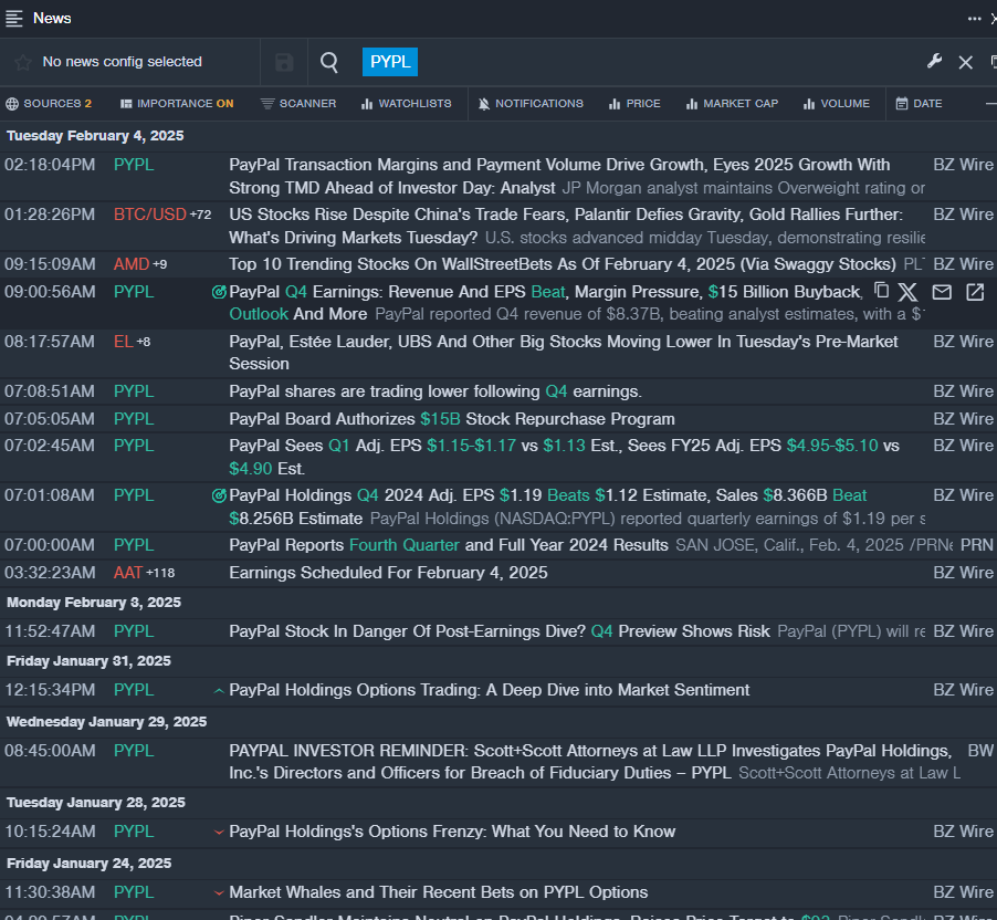 - Benzinga Pro’s real-time newsfeed alerted to latest PYPL news.