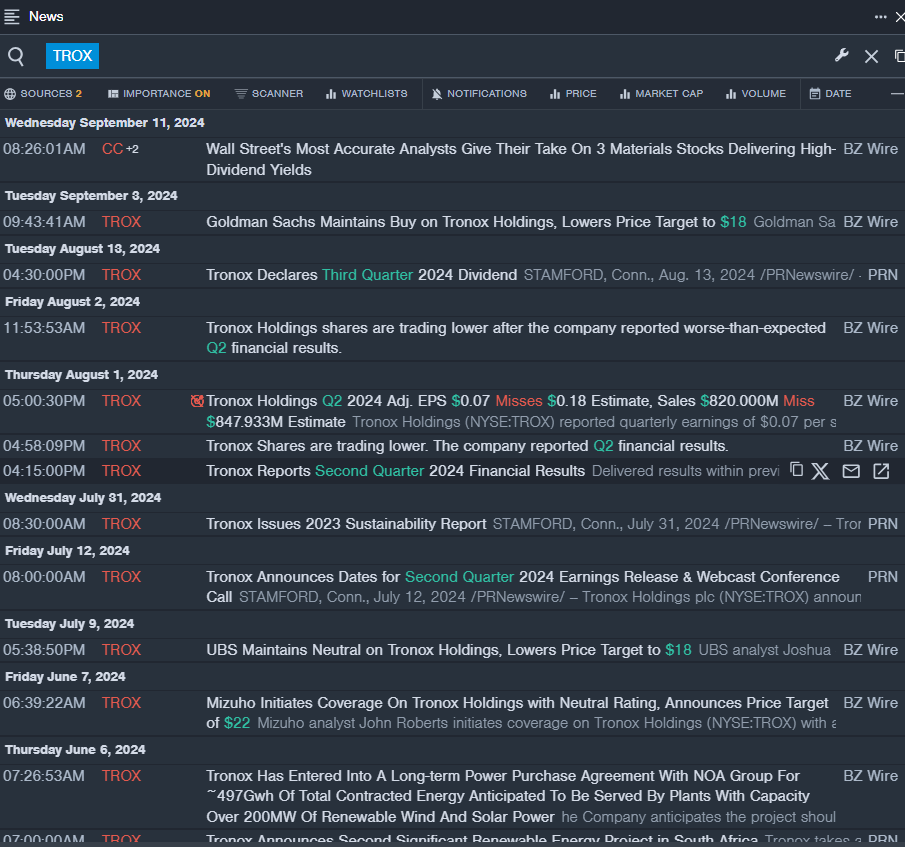 • TROX Price Action: The company’s shares slipped 0.3%, settling at $11.71 at the end of trading hours on Thursday.