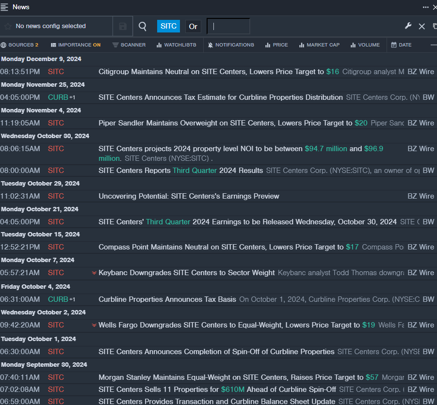 - SITC Price Action: Shares of Site Centers gained 0.6% to close at $15.43 on Monday.