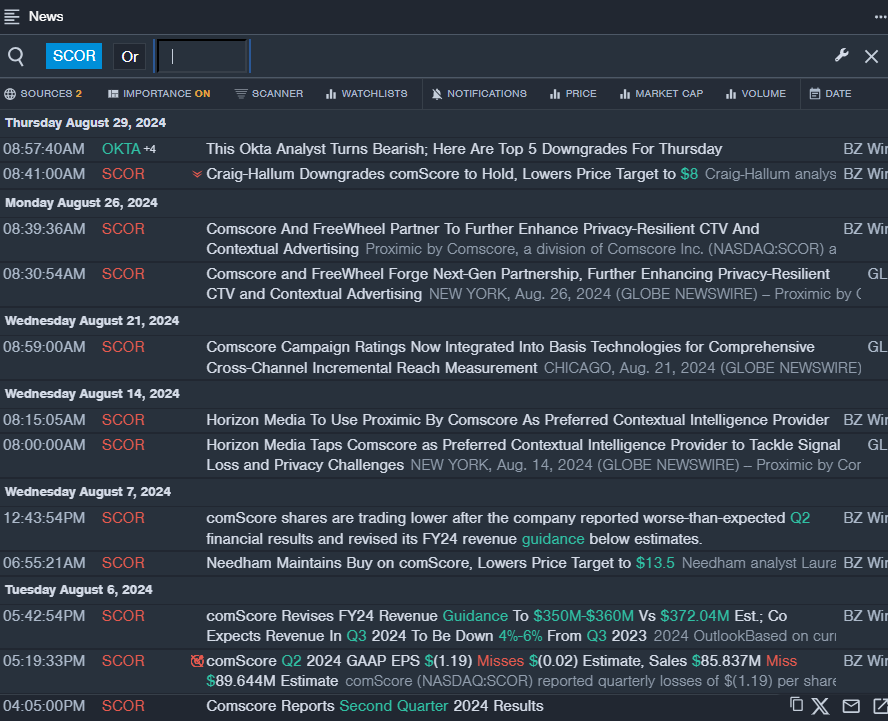 - SCOR Price Action: Shares of comScore showed a slight uptick, closing at $7.17 on Friday.