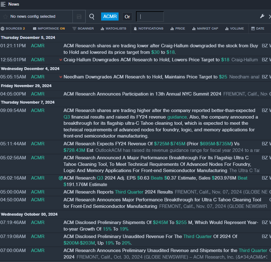 - Benzinga Pro’s real-time newsfeed alerted to latest ACMR news.