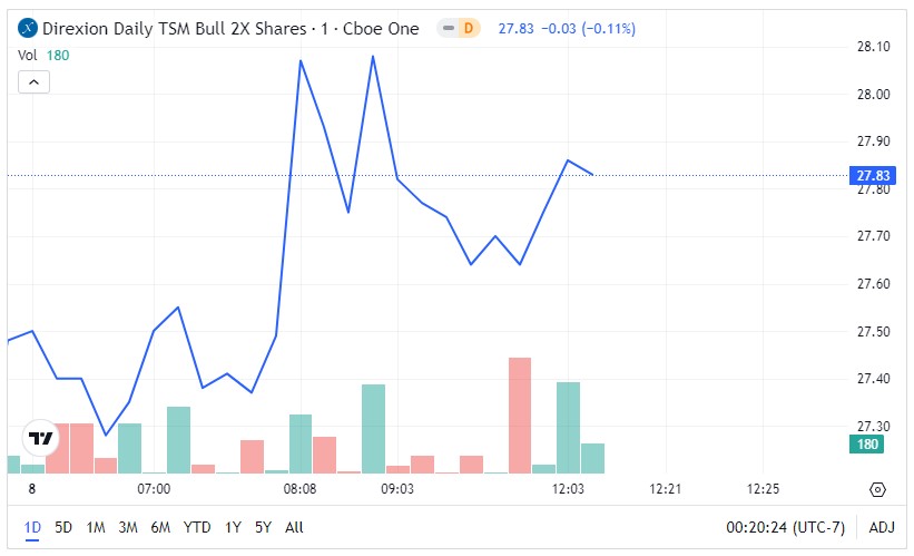 Despite the dichotomy in TSM stock sentiment, financial services behemoth Direxion has seized the opportunity with its Taiwan Semiconductor-focused ETFs. The Direxion Daily TSM Bull 2X Shares TSMX and Direxion Daily TSM Bear 1X Shares TSMZ cater to investors seeking exposure to TSMC shares in both bullish and bearish scenarios.
