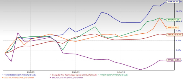 TSM stock has also outperformed major semiconductor companies, including NVIDIA NVDA, Advanced Micro Devices AMD and Broadcom AVGO. Shares of NVIDIA and Advanced Micro Devices have risen 11.5% and 8.8%, respectively, while Broadcom stock has declined 2.1% over the past month.