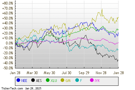 In afternoon trading on Tuesday, Utilities stocks are the worst performing sector, showing a 1.6% loss. Within that group, NextEra Energy Inc (Symbol: NEE) and AES Corp (Symbol: AES) are two large stocks that are lagging, showing a loss of 4.5% and 4.2%, respectively. Among utilities ETFs, one ETF following the sector is the Utilities Select Sector SPDR ETF (Symbol: XLU), which is down 1.8% on the day, and up 0.77% year-to-date. NextEra Energy Inc, meanwhile, is down 1.65% year-to-date, and AES Corp, is down 14.84% year-to-date. Combined, NEE and AES make up approximately 13.1% of the underlying holdings of XLU.