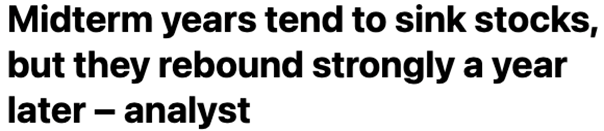 This came to mind as I’ve been seeing articles and social media posts recently that midterm election years (the general elections held near the midpoint of a president’s four-year term of office) are “bad years for the market.”