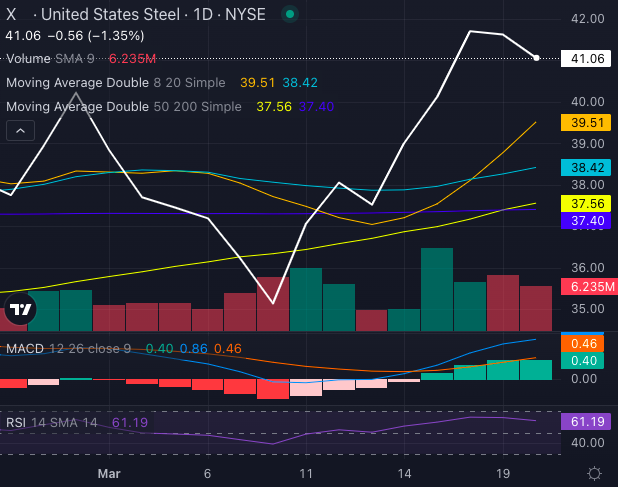 United States Steel Corp X is flashing bullish signals, riding an 8.35% gain over the past five days and forming a Golden Cross, a technical indicator often linked to continued upside.