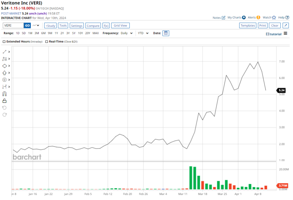 With a modest market cap of approximately $194.6 million, Veritone’s shares have surged an impressive 160.7% year-to-date. Despite this climb, a recent 39% pullback from its 52-week high has introduced volatility into the stock.