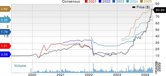 In addition to Vertiv, other notable players within the technology landscape include NVIDIA (NVDA), Bill Holdings (BILL), and Bentley Systems (BSY), each boasting a Zacks Rank #1. NVIDIA’s earnings per share estimate for 2024 has seen a positive revision, currently pegged at $23.84. NVDA shares have soared by 231% in the last year.