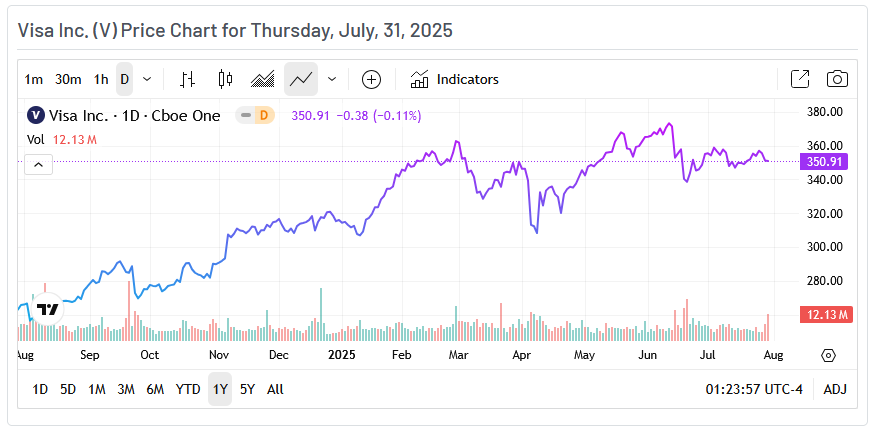Visa (NYSE:) is a dominant player in the worldwide payments industry, and even amid macroeconomic difficulties, the stock has delivered impressive performance in 2025 so far.