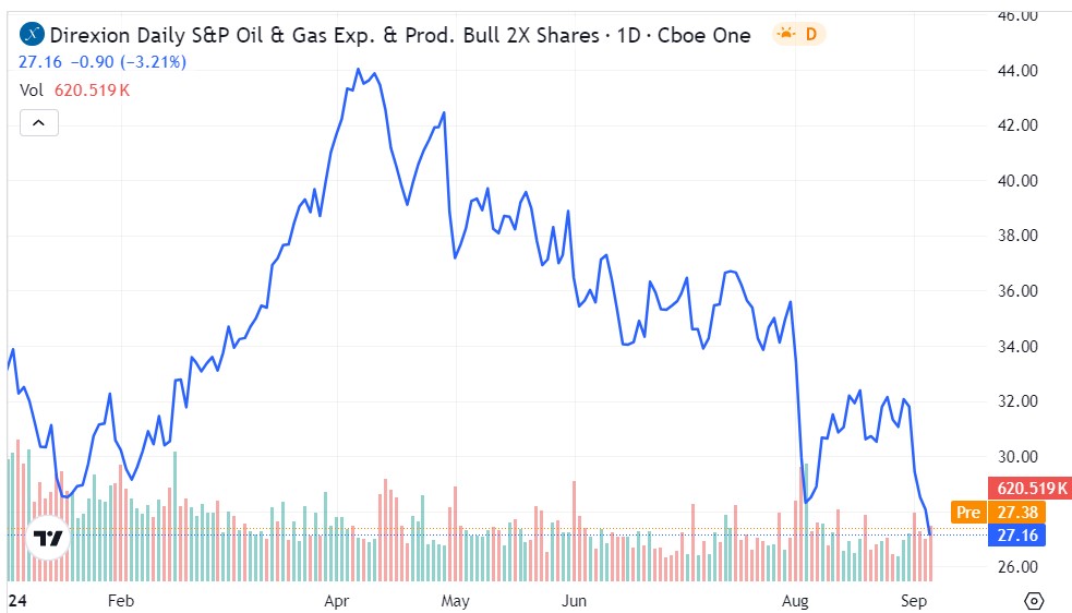 On the flip side, for those bearish on hydrocarbons, the Direxion Daily S&P Oil & Gas Exploration & Production Bear 2X Shares (DRIP) strive to mimic 200% of the inverse performance of the same index. Regardless of the chosen fund, investors must tread cautiously, as both GUSH and DRIP are designed for daily holds to avert adverse compounding effects on performance.
