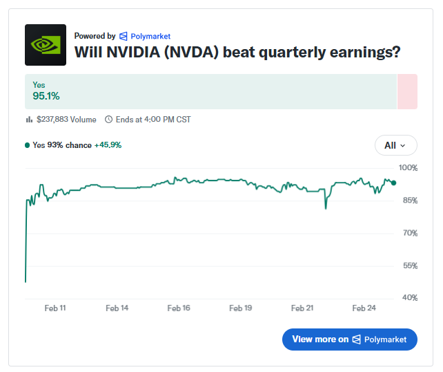 Heading into this quarter, probability markets were assigning better than a 90% chance that NVIDIA would beat earnings.