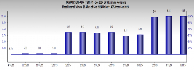 According to the Zacks Consensus Estimate, TSMC’s earnings per share for the current year are projected to rise by 11.4% year over year, signaling a promising financial performance in the pipeline.