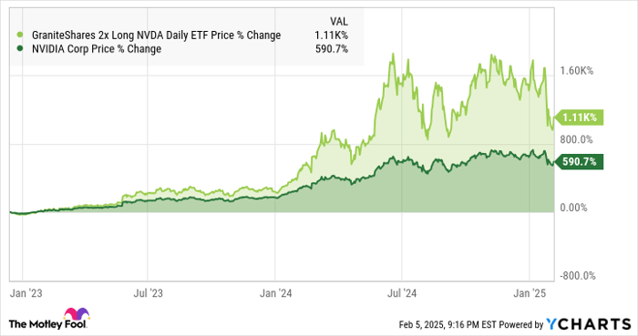 Shares of the GraniteShares 2x Long NVDA Daily ETF (NASDAQ: NVDL) fund crashed hard in January 2025. The leveraged exchange-traded fund (ETF) fell 26.1% last month, according to data from S&P Global Market Intelligence. This crash highlighted the risks of holding leveraged ETFs, whose downturns can be amplified even harder than the positive returns in better times.