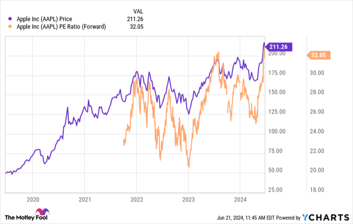 Trading at a premium wouldn’t raise alarms if Apple were experiencing rapid growth. However, its revenue witnessed a downturn in the 2023 fiscal year (a 3% decline), while the increase in earnings per share was only marginal (0.3% uptick). These trends persisted through the initial two quarters of fiscal 2024.