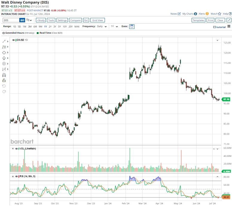 In the pulse of the market’s dance, Disney’s rhythm has faced highs and lows, echoing the unpredictable nature of the financial landscape. From its reign as the best-performing Dow stock in 2024’s first quarter to recent setbacks that saw a 21.9% decline from late-March peaks, Disney encapsulates the rollercoaster ride that investors are familiar with.