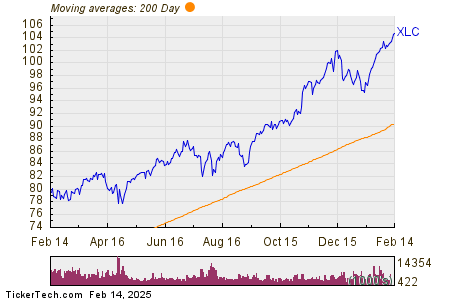 Looking at the chart above, XLC’s low point in its 52 week range is $76.48 per share, with $105.08 as the 52 week high point — that compares with a last trade of $104.82. Comparing the most recent share price to the 200 day moving average can also be a useful technical analysis technique — learn more about the 200 day moving average ».